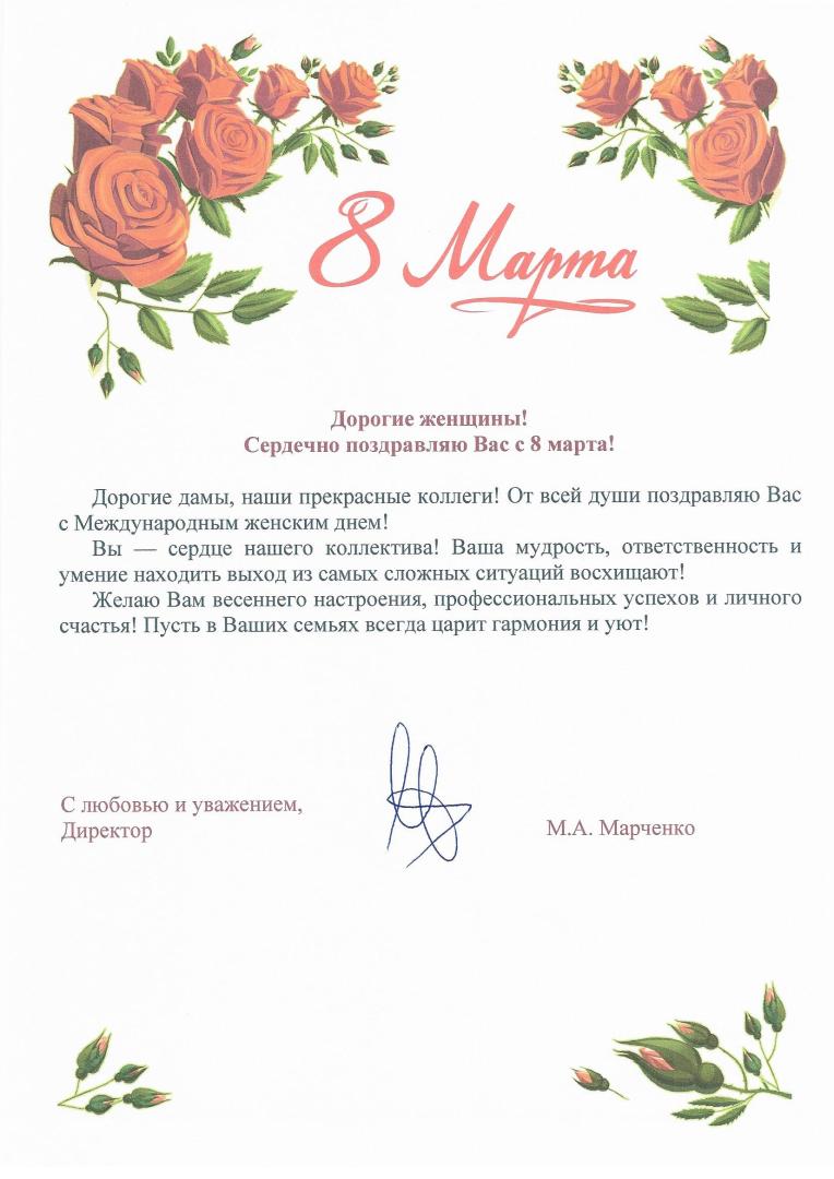Поздравление директора ИВМиМГ СО РАН профессора РАН, д.ф.-м.н. Михаила Александровича Марченко с 8 марта